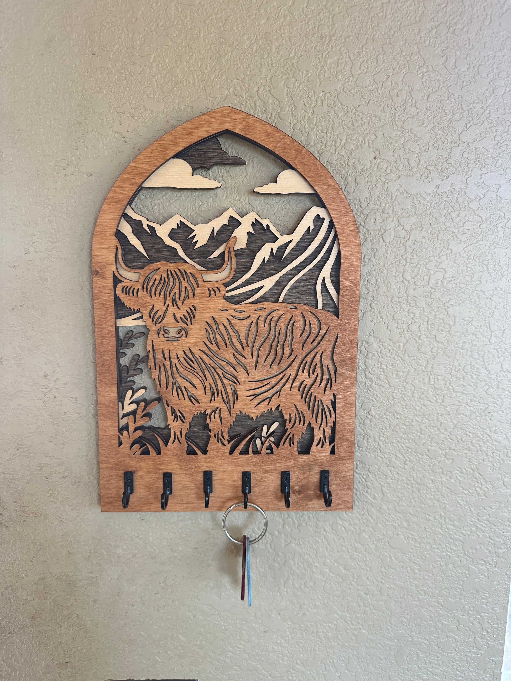 The Highland Cow Key Holder combines practicality with a touch of rustic charm. Expertly crafted, it keeps keys organized while adding a stylish accent to any entryway or workspace. Its unique highland cow design makes it a standout piece that blends functionality with distinctive decor. Perfect for those who appreciate both utility and character in their home accessories.