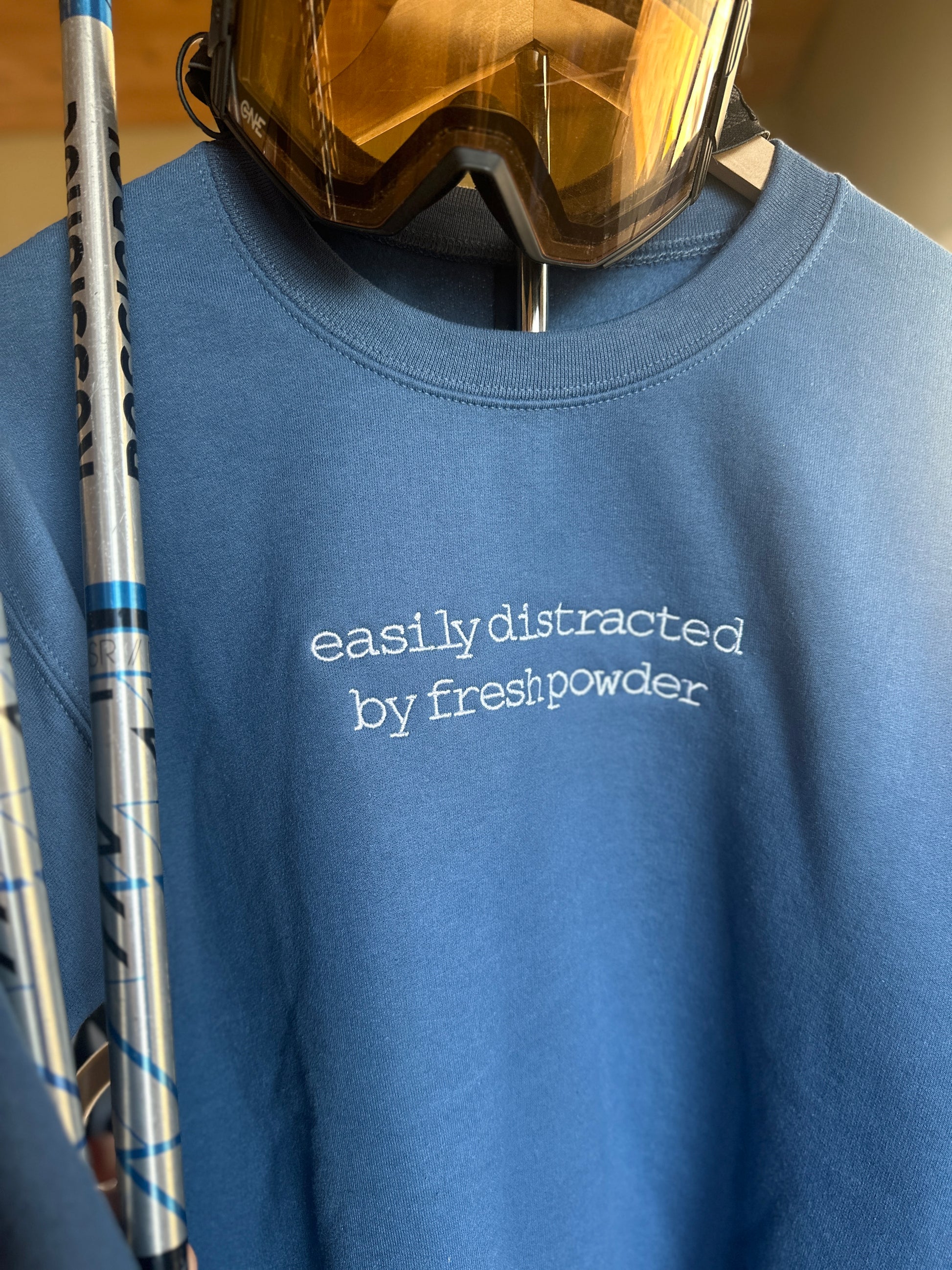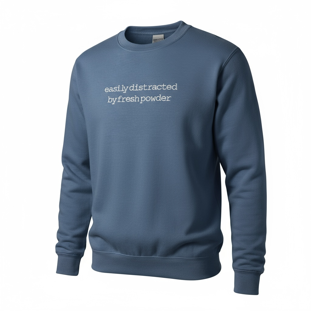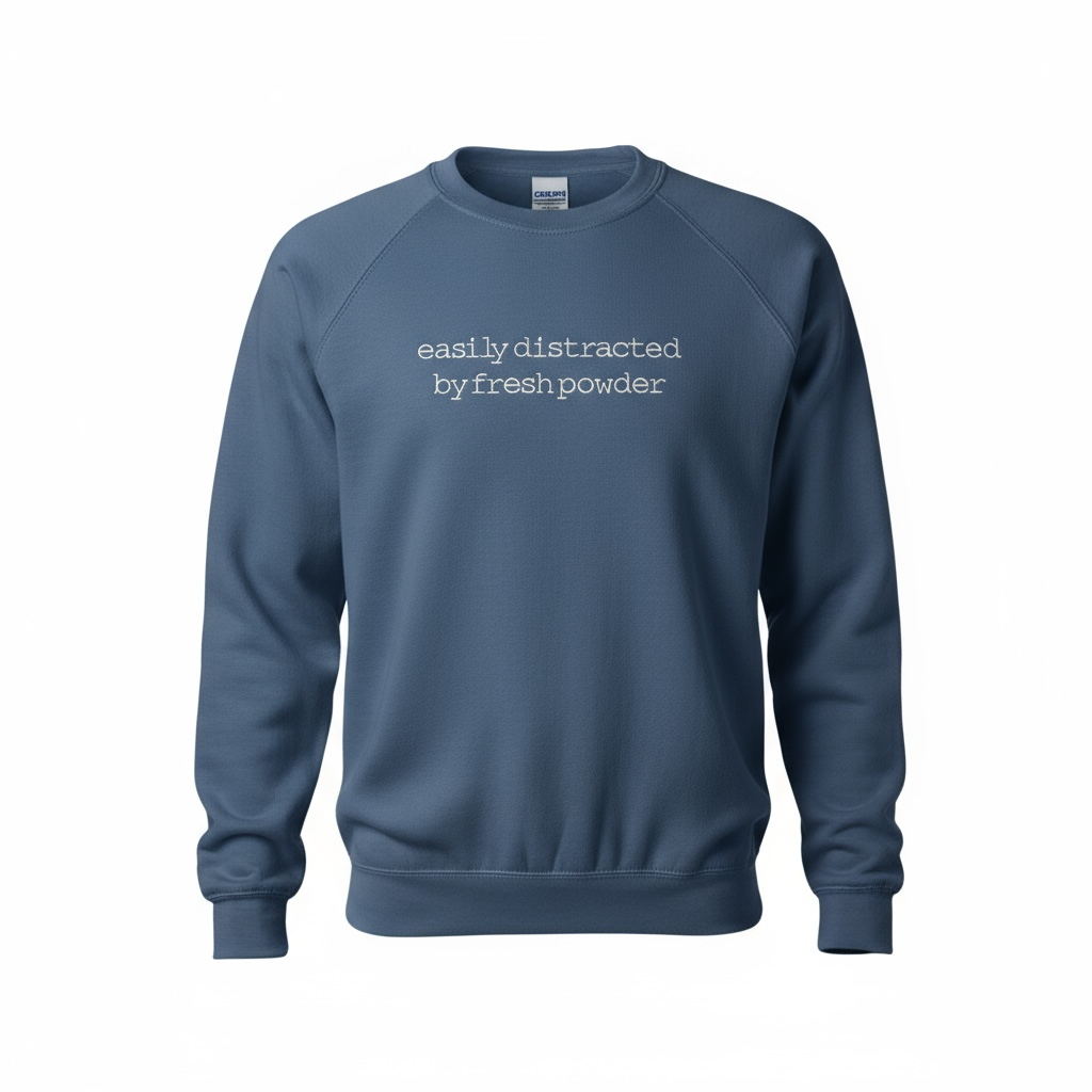 Easily Distracted by Fresh Powder is the perfect sweatshirt for those who enjoy the snow and love winter sports. With a natural inclination towards the cold weather and all the fun activities it offers, this crewneck is perfect for those looking to embrace their love for skiing, snowboarding, and more. Don't let anything get in the way of your winter adventures. Stay warm and cozy with our Easily Distracted by Fresh Powder crew.