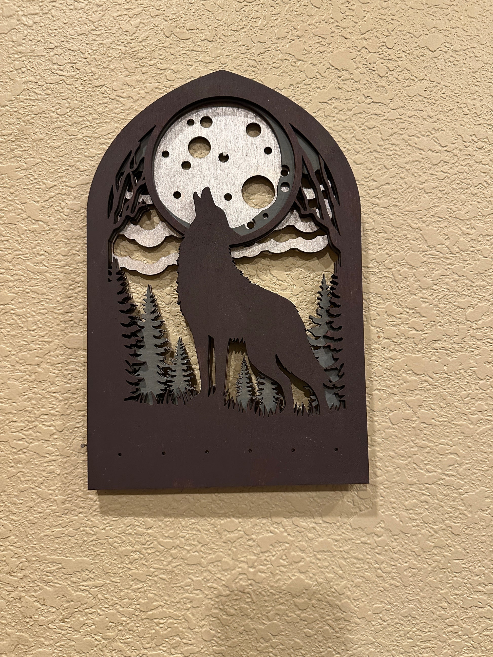 This Wolf Key Holder features a striking design of a wolf howling at the moon, adding a wild, natural touch to your home or office decor. Crafted to securely hold up to six sets of keys, it helps keep your keys organized and easily accessible. Durable and functional, this key holder combines artistry with practicality for a seamless everyday solution.